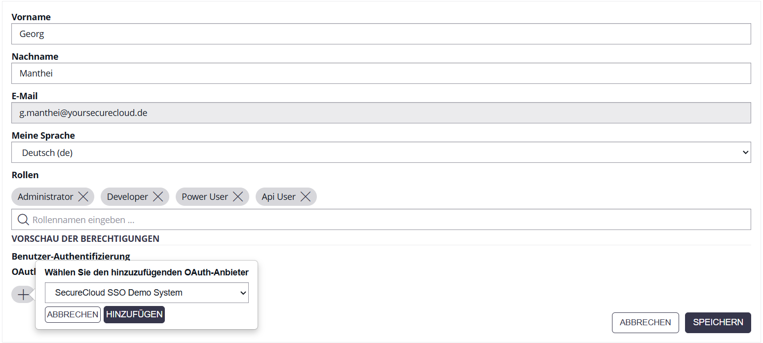 Abbildung 3: In den Benutzereinstellungen weisen Sie den konfigurierten SSO-Anbieter zu. Der Benutzer erhält anschließend eine Bestätigungs-E-Mail.