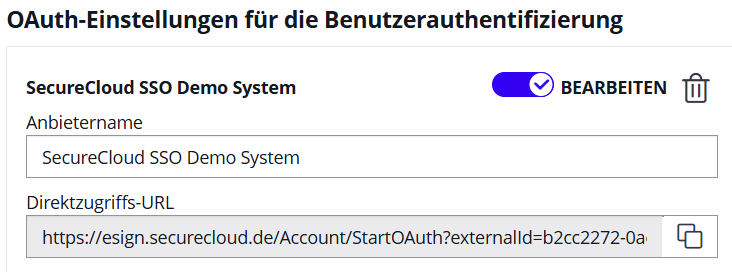 | Gültige Weiterleitungs-URL | https://esign.securecloud.de/eSAWWebPublic/Account/ValidateOAuth |